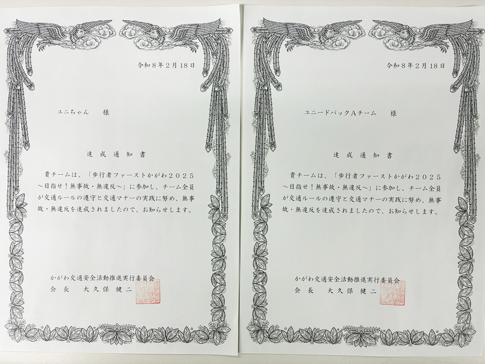 に2チーム(計6名)で参加し、全員が期間中の無事故・無違反を達成し、